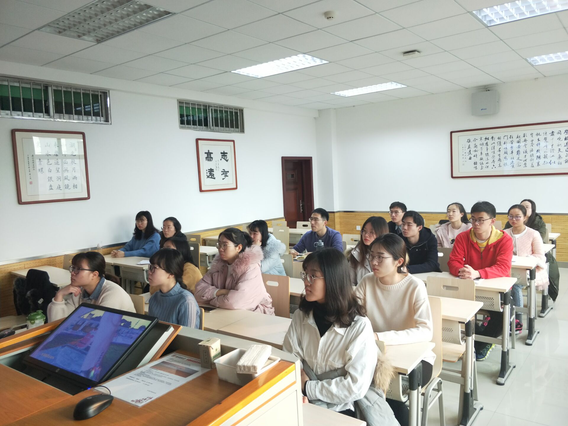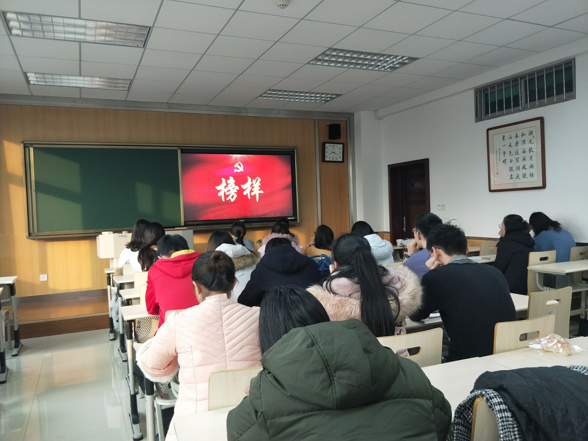 本科生第五党支部发展对象及全体党员于文渊楼1506教室集中观看专题节目《榜样4》,认真学习榜样精神。