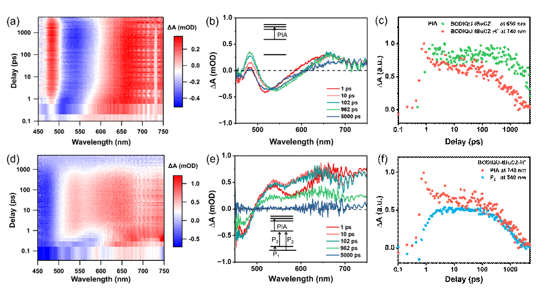 图5 BODIQU-tBuCZ分子质子化前后的TSA光谱数据