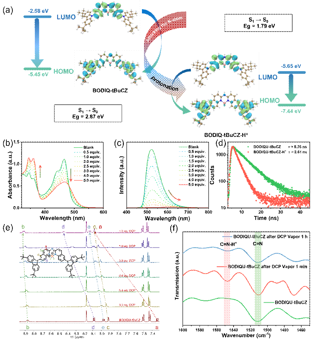 图2 BODIQU-tBuCZ的传感机制与分子响应