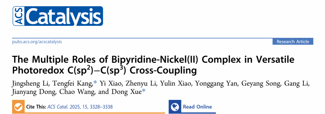 网址The Multiple Roles of Bipyridine-Nickel(II) Complex in Versatile Photoredox C(sp2)–C(sp3) Cross-Coupling | ACS Catalysis