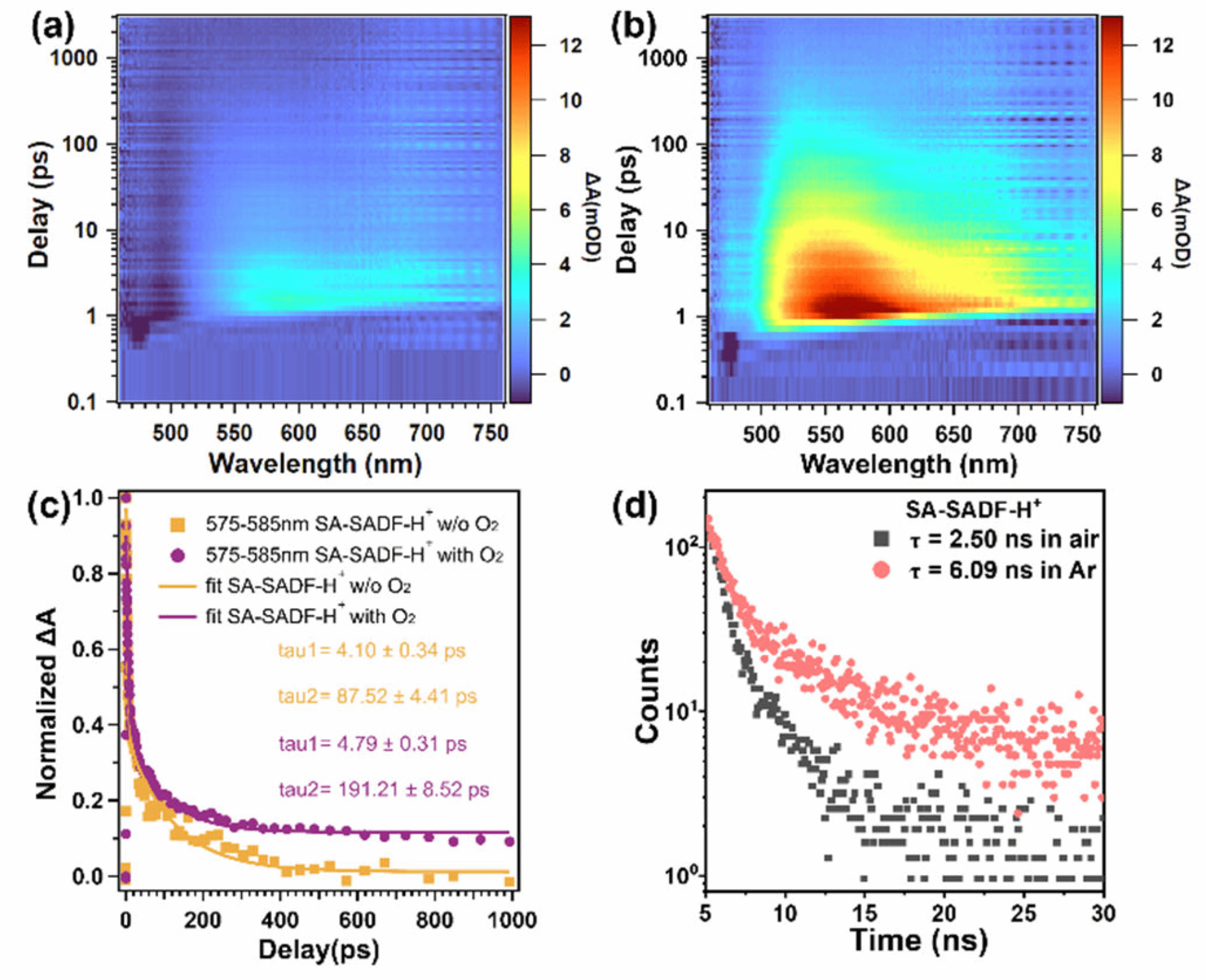 图3 非对称质子化超分子光催化剂SA-SADF-H+的激发态动力学过程分析