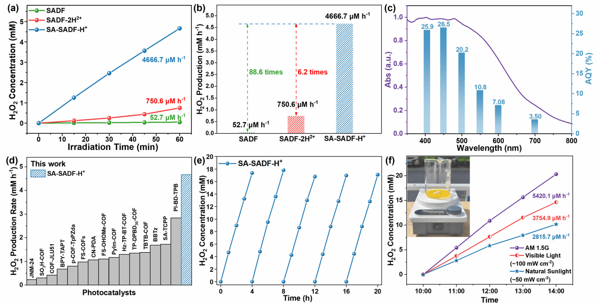 图4 非对称质子化超分子光催化剂SA-SADF-H+的光催化产过氧化氢性能