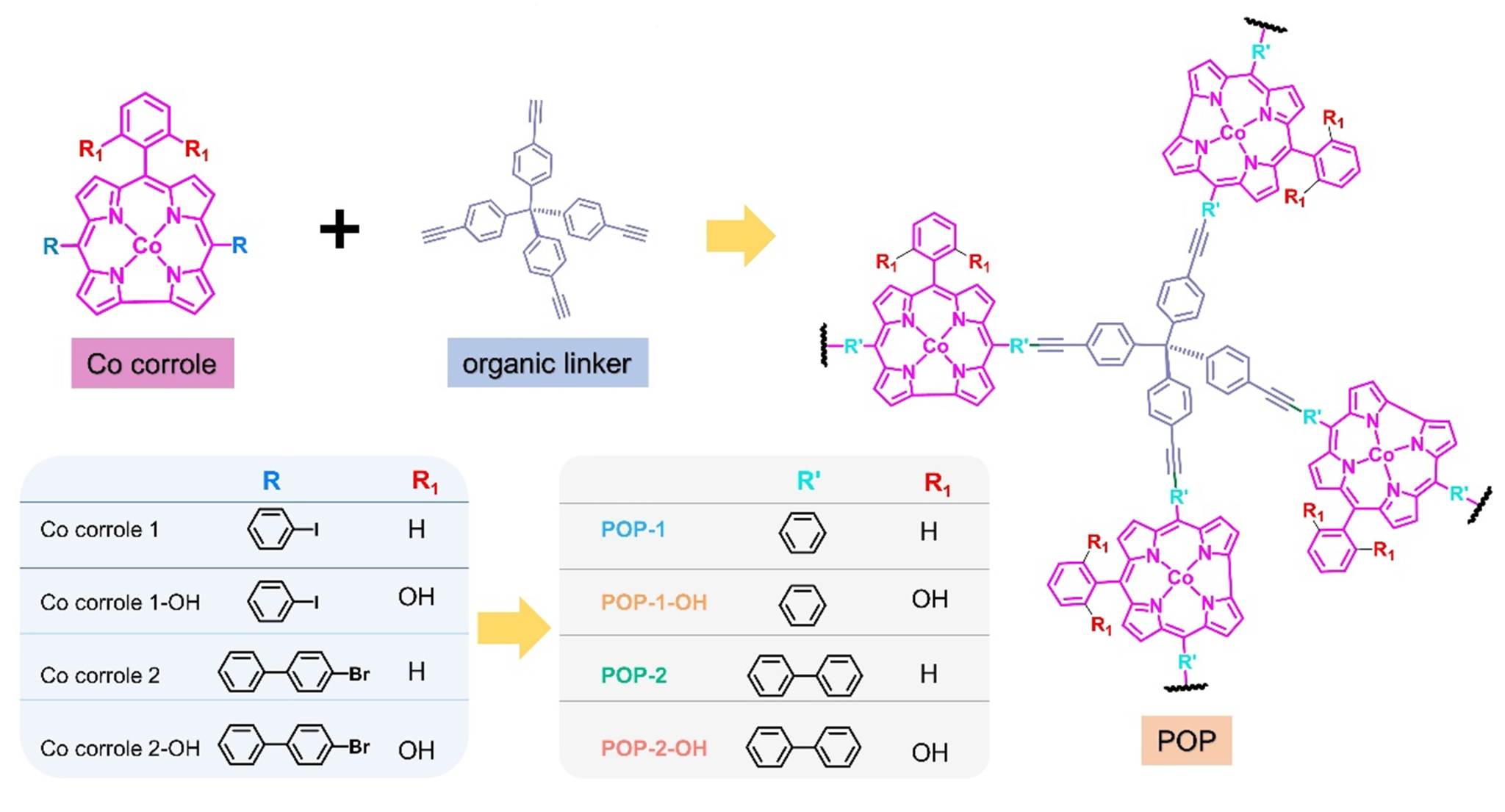 图2. 合成钴咔咯基多孔有机聚合物的示意图