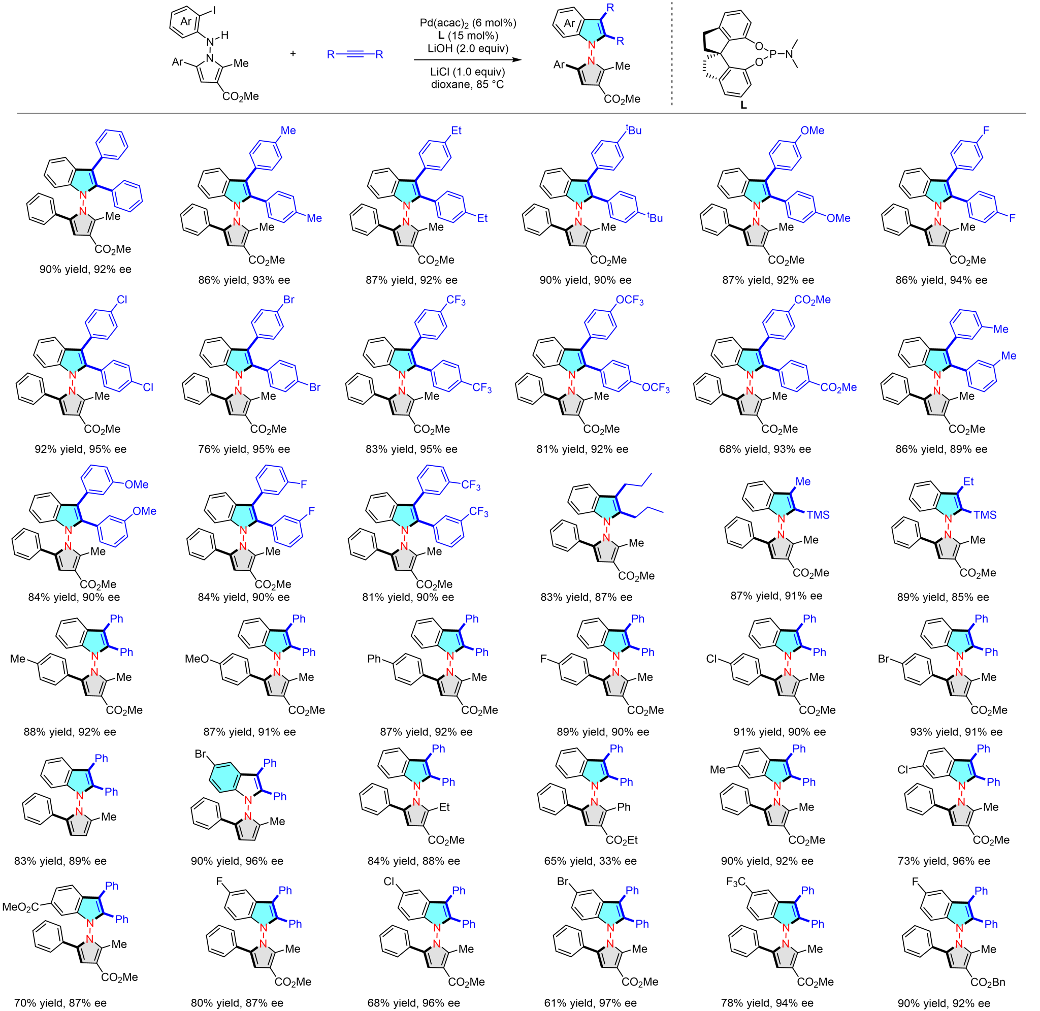 钯催化不对称Larock反应合成N-N轴手性吲哚