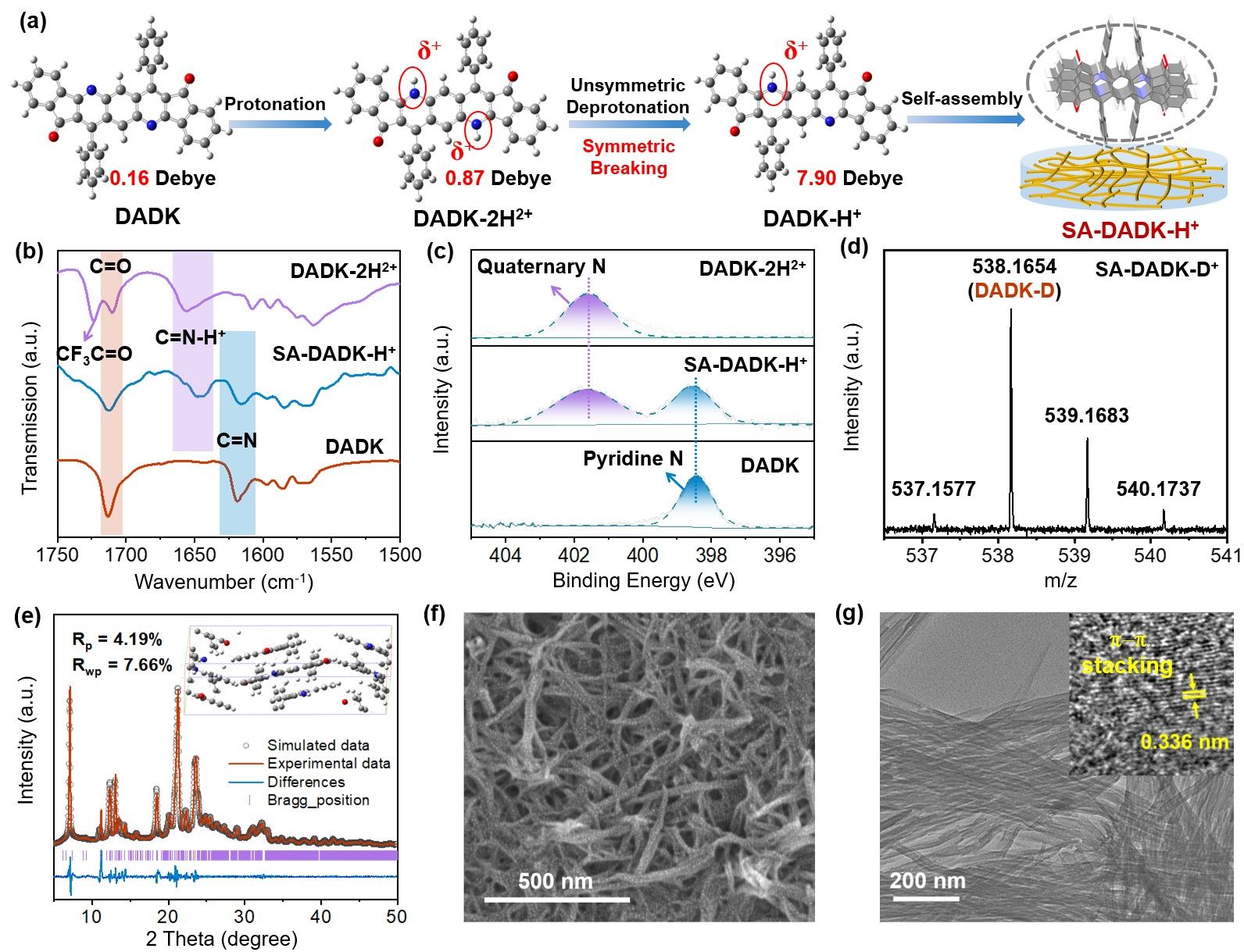 图一 超分子光催化剂SA-DADK-H+的非对称结构表征