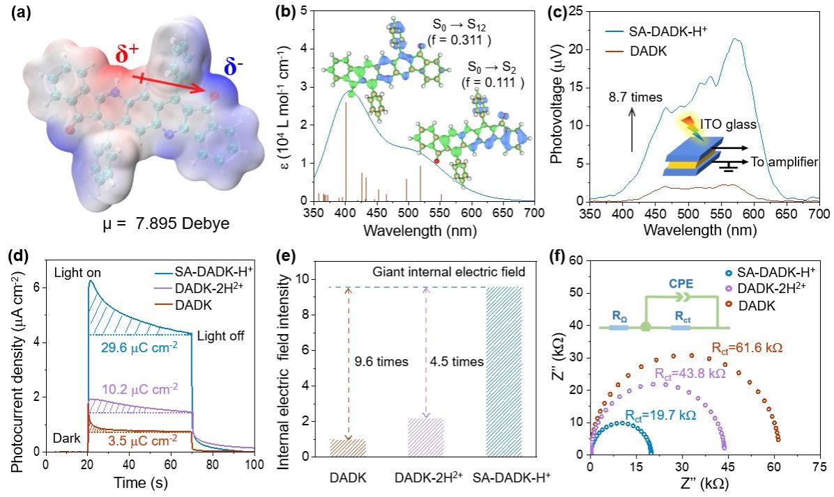 图二 超分子光催化剂SA-DADK-H+的内建电场增强证据