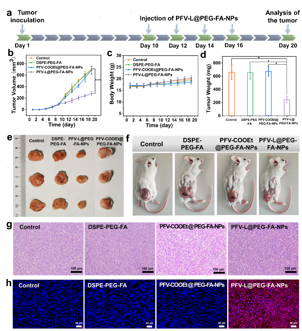 图3. PFV-L@PEG-FA-NPs的体内抗肿瘤效果评估。