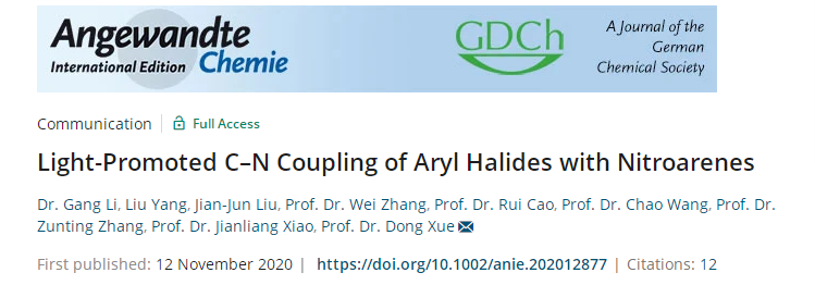博士研究生宋戈洋,肖建良教授和薛东教授为论文通讯作者。论文信息:Angew. Chem. Int. Ed. 2021, 60, DOI: 10.1002/anie.202108587.(//onlinelibrary.wiley.com/doi/10.1002/anie.202108587)。