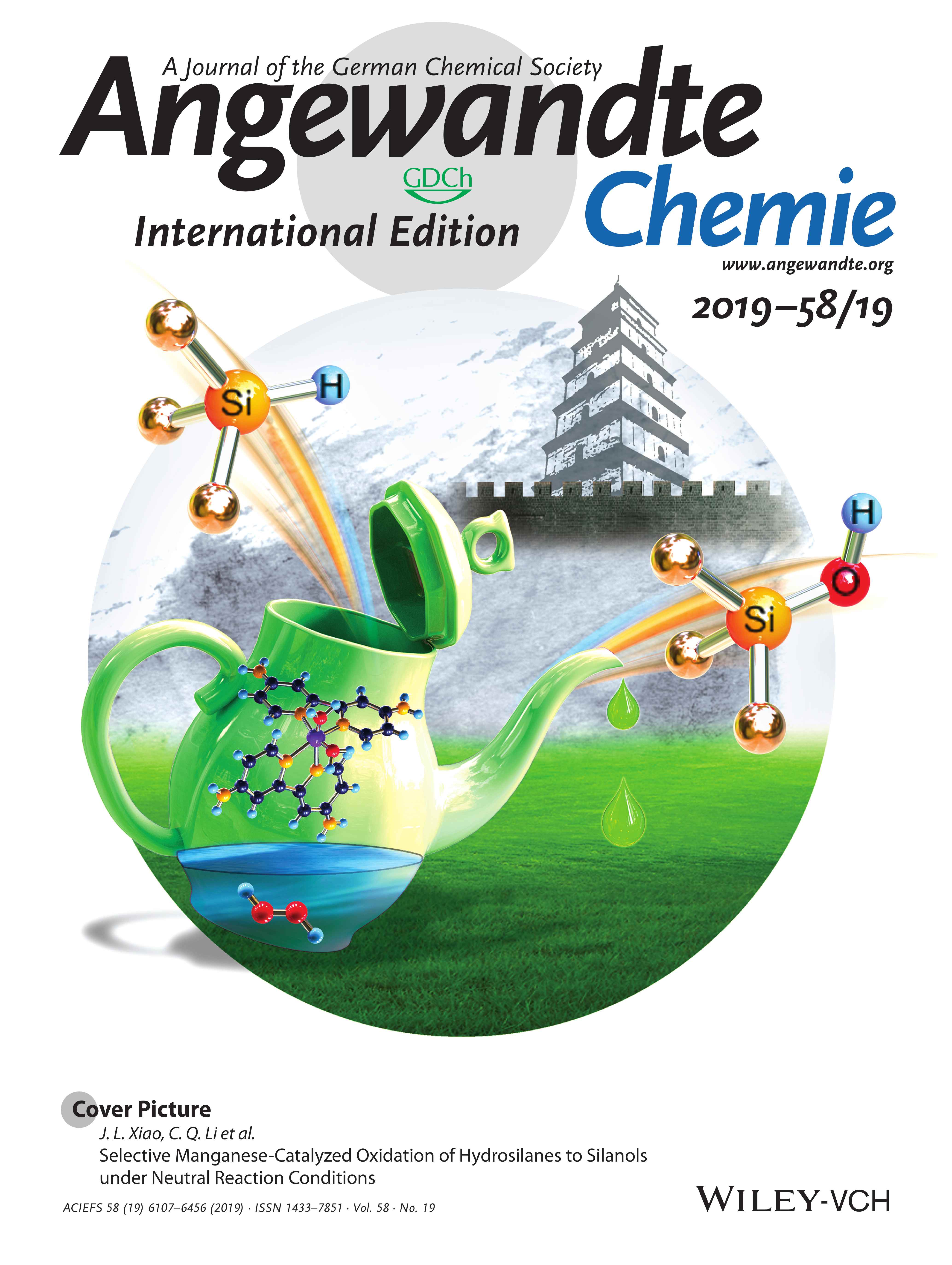 肖建良教授团队“绿色催化合成团队”, 李超群研究员小组通过发展富电子联吡啶型锰作为催化剂,以H2O2为氧化剂实现了对硅氢键的高效、选择性条件温和的氧化,解决了硅氢键氧化合成硅醇不过避免有硅醚副产物这一挑战性课题。这一研究成果以VIP文章在线发表在国际顶尖化学期刊《德国应用化学》(Angew. Chem., Int. Ed. 2019, 58, 6380 –6384)上,并被选前封面文章。最近文章也被“ChemViews”报道。硕士研究生王凯凯为该论文第一作者,肖建良教授和李超群研究员为论文共同通讯作者,香蕉视频